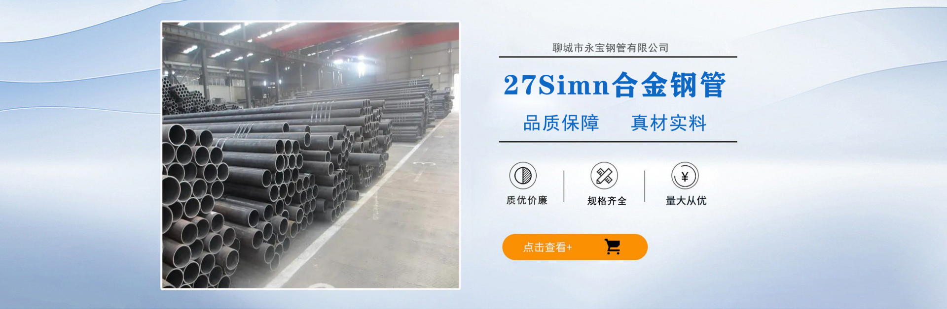 聊城市永寶鋼管有限公司是聊城較大的鋼管生產企業之一。地理位置優越,交通十分便利。公司占地面積99000平方米,廠房占地面積42000平方米,員工365人,其中外聘高級工程師10人,高級管理人員8人,大專以上學歷56人。總資產達1.5億元,二期工程已籌備建設,完成后年出產能力可達到35萬噸。主營產品:27Simn合金鋼管,高壓鍋爐管,20G鍋爐管,厚壁合金鋼管,15CrMoG合金鋼管,42crmo合金鋼管,40crmo合金鋼管,20G合金鋼管,合金鋼管廠,鍋爐管廠  公司以先進的工藝、優良的產品質量、寬幅的產品組矩、優質的服務贏得中外鋼管行業的好評。本公司通過了ISO9001:2000國際質量管理體系認證。  企業精神:“創新、求實、誠信、高效”;  企業作風:“嚴、細、實、快”;  企業工作方針:加強內部管理,夯實基礎,全面提高職工整體素質,使企業管理水平再上新的臺階。  公司宗旨:以服務求市場、以質量求生存、以創新求進步、以科技求發展。...